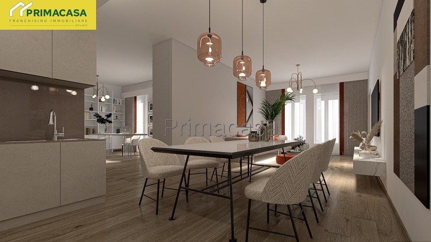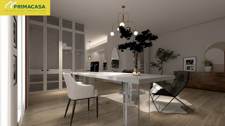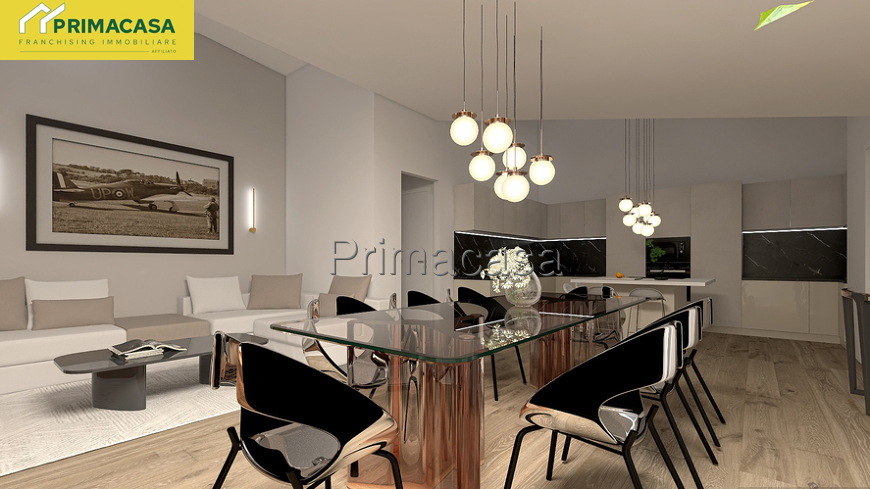 Spazioso, luminoso e accogliente, l’ampio soggiorno con cucina a vista si apre direttamente sul terrazzo, creando lo spazio perfetto per pranzi all’aperto e attimi di relax.