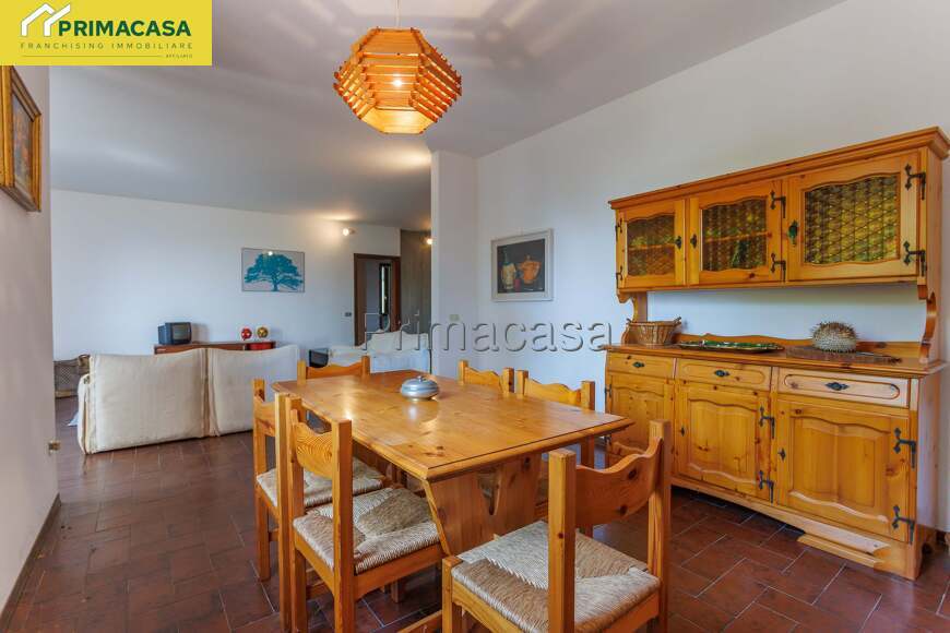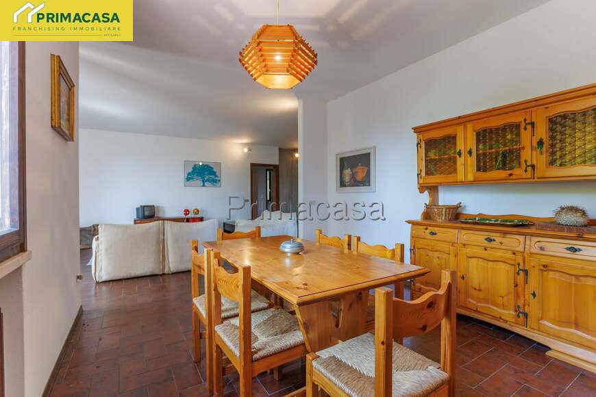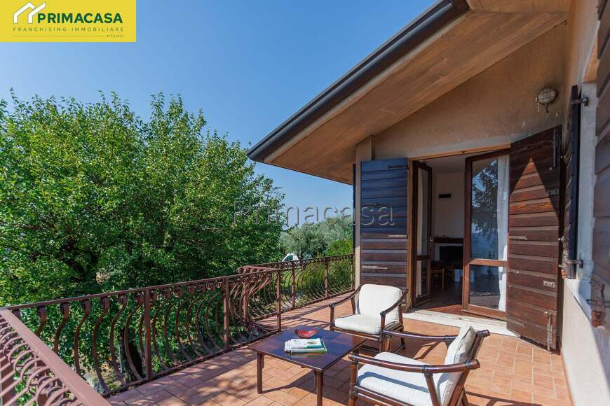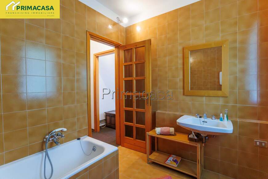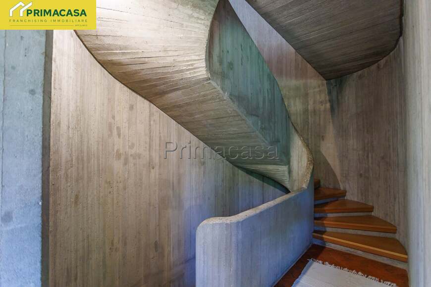 La villa si sviluppa su due piani fuori terra e uno interrato. Si accede al piano terra attraversando un porticato pavimentato di mq 55 e internamente è suddiviso in 4 spazi e più precisamente da una taverna di mq 50, una lavanderia di mq 4, un bagno di mq 5,70 e da un pratico ripostiglio/stireria/studio di mq 10.55; a mezzo di una maestosa scala a chiocciola con base ovale realizzata in legno e cemento stampato tipico degli anni '80 si sale al piano primo dove siamo subito accolti da un soggiorno/salotto di mq 42 con camino e accesso al terrazzo panoramico di mq 23, la cucina è abitabile mentre la zona notte si suddivide in camera di mq 13 con balcone e bagno privato, vano guardaroba di mq 5, bagno e altre due camere di mq 12. Scendendo fino al piano interrato oltre alla centrale termica troviamo 3 grandi cantine rispettivamente di 55, 25 e 28 metri quadri ciascuna, completa infine la proprietà il garage di mq 31.