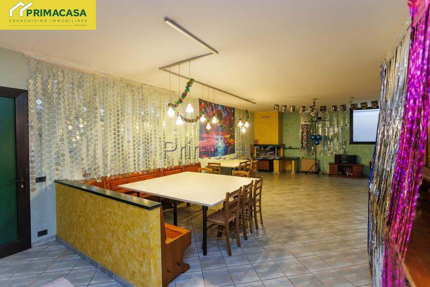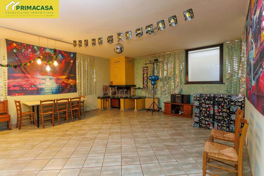 Al piano interrato si trova una spaziosa taverna con camino, ideale per momenti conviviali, completa di cucina, bagno e un ulteriore locale di servizio.