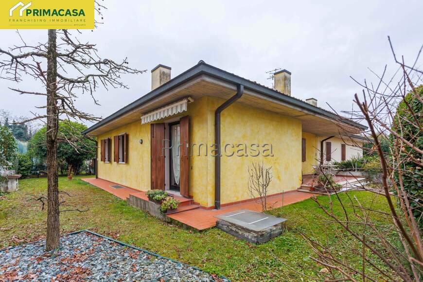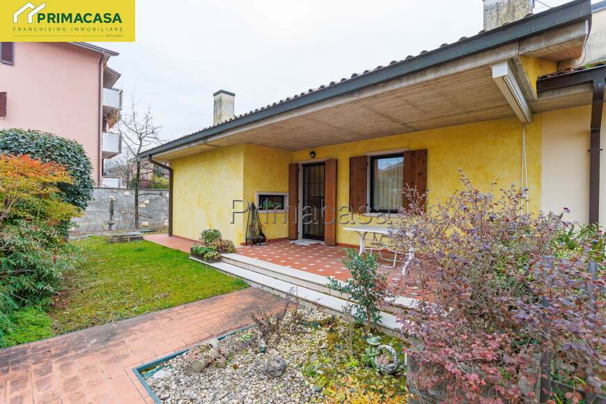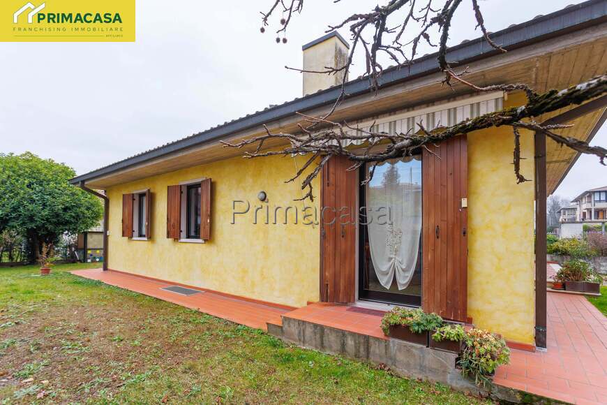 L’ingresso si apre su un luminoso soggiorno, con predisposizione per il camino, affiancato da una cucina abitabile con accesso diretto al giardino.