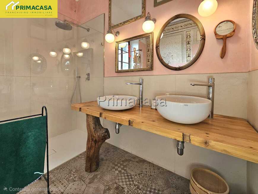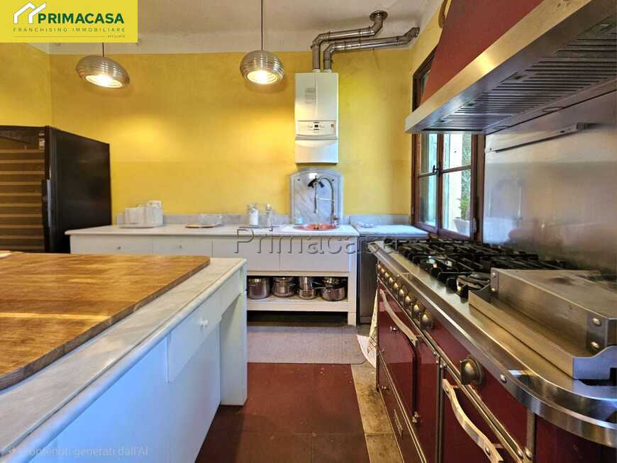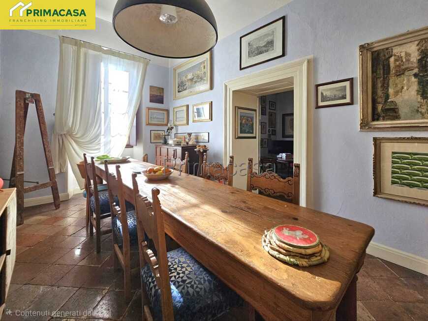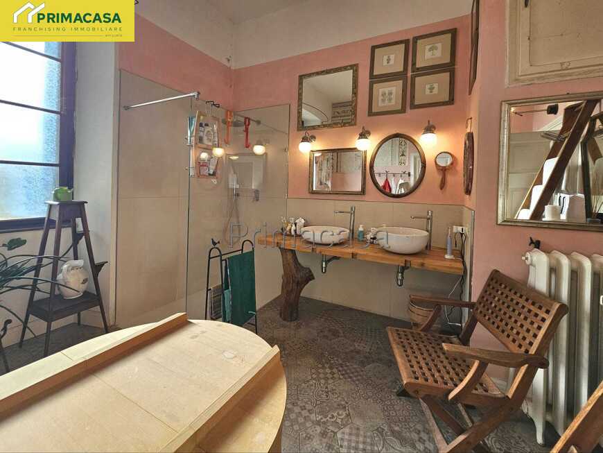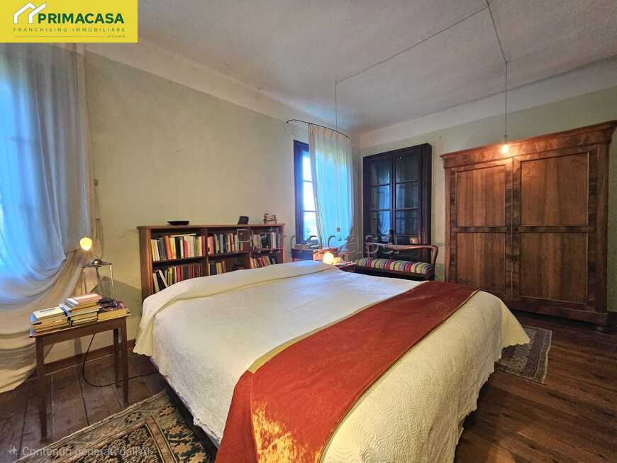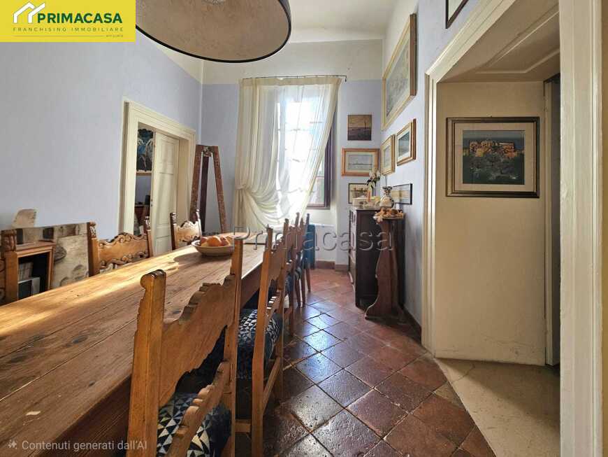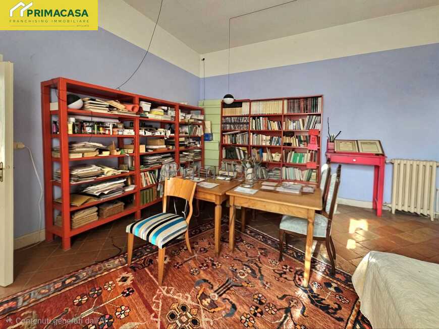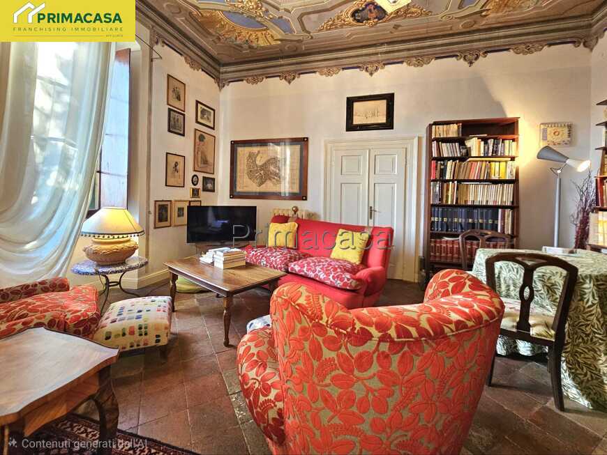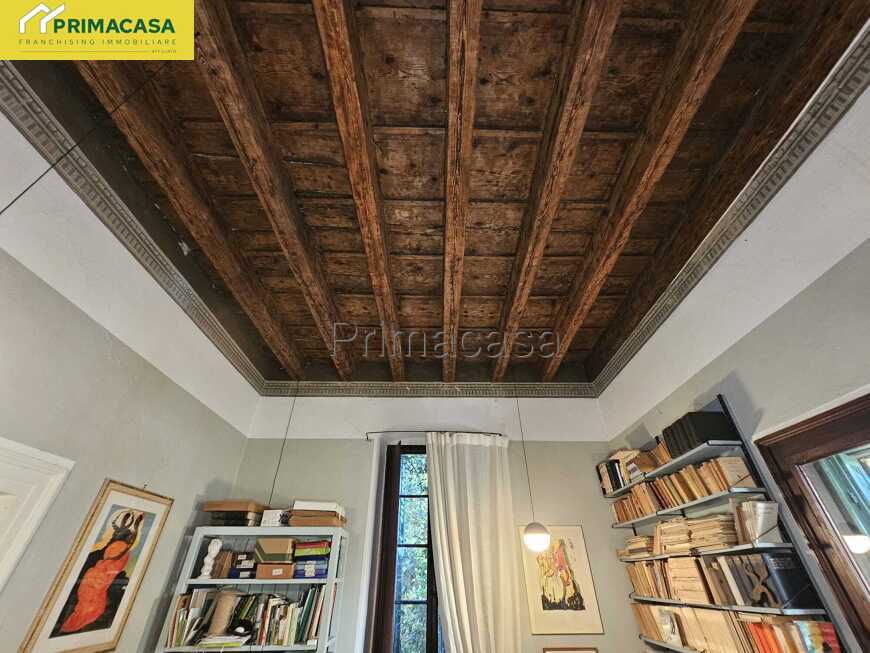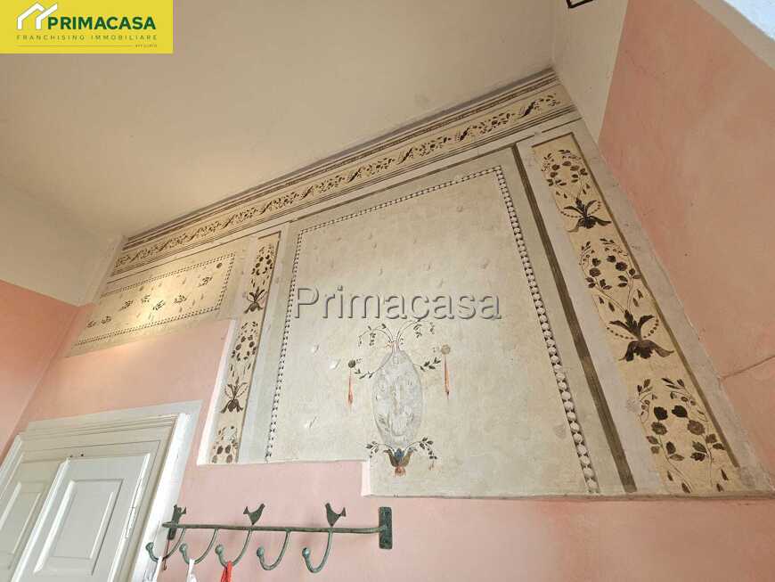 L’abitazione, di grande charme, conserva tutto il prestigio della villa, offrendo ambienti ampi, luminosi e armoniosamente distribuiti. Un lungo corridoio attraversa l’intera struttura, affacciandosi su stanze con soffitti e pareti affrescate poste ai lati: nove ambienti complessivi, versatili e adattabili alle esigenze del conduttore.